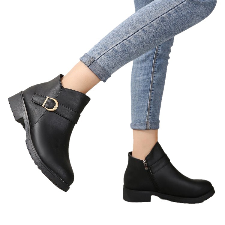 Fashionable Women’s Leather Ankle Boots – Black and Brown Chunky Block Heel Zipper Boots Size 38