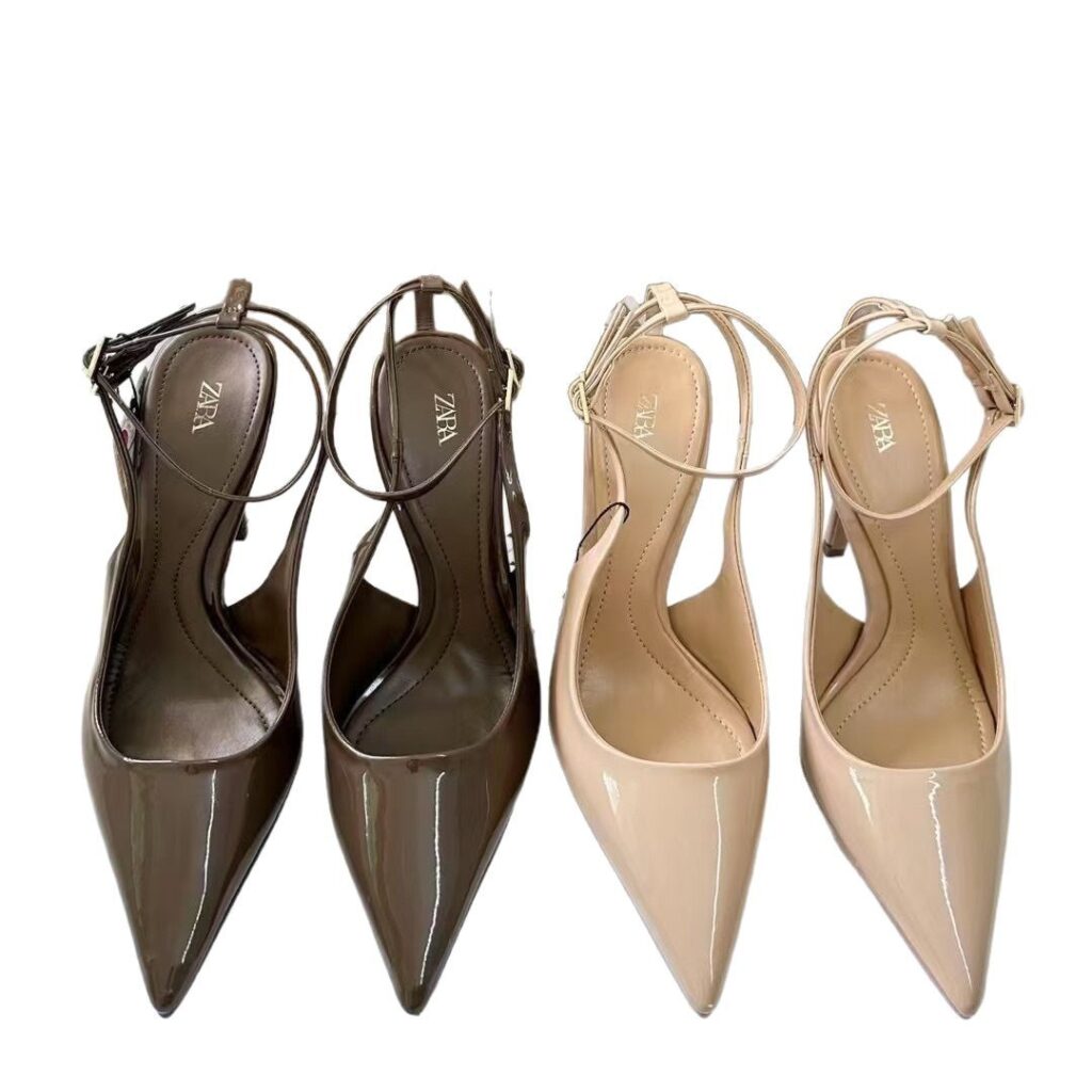 ZARA-Style Pointed Toe High Heel Stiletto Pumps for Women – Nude Patent Leather – Elegant Slingback Size 38